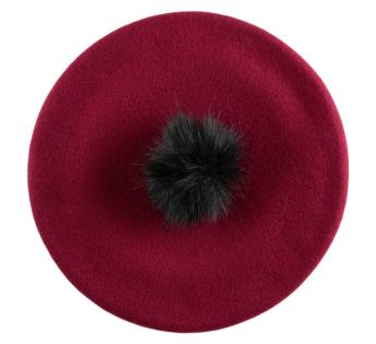 Gemaakt van pure merinowol, is deze Franse baret versierd met een speelse pompon, wat een vleugje fantasie toevoegt aan een klassieker die opnieuw is uitgevonden. De diepzwarte nep bont pompon contrasteert met de levendige kleur van het vilt.