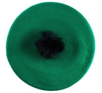 Gemaakt van pure merinowol, is deze Franse baret versierd met een speelse pompon, wat een vleugje fantasie toevoegt aan een klassieker die opnieuw is uitgevonden. De diepzwarte nep bont pompon contrasteert met de levendige kleur van het vilt.
