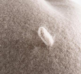 Wolvezels kunnen 20.000 keer buigen zonder te breken en 30% uitrekken zonder verandering. Zo behoudt de baret zijn uitzonderlijke drapering zelfs na jaren
