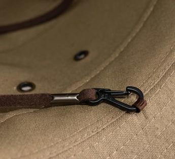 Achter zijn robuuste look schuilt een uitmuntende functionaliteit. De stevige katoenen stof biedt optimale zonbescherming, de gegaasde oogjes zorgen voor ventilatie en de afneembare kinband houdt je stijlvol, zelfs bij wind.