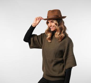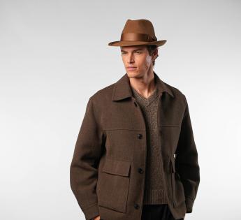 De tijdloze Fedora-vorm wordt versterkt door een vormbare ruwe snijkant, die naar beneden of omhoog kan worden gedragen, afhankelijk van de gewenste stijl. Een hoed die zowel verfijnd, technisch als veelzijdig is, ontworpen voor degenen die elegantie zonder compromis zoeken.