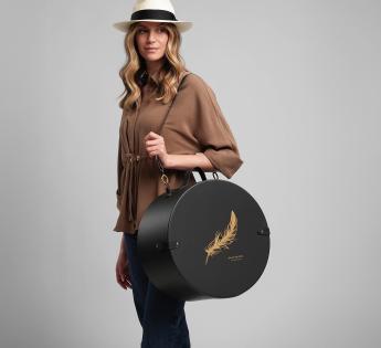 De massief houten bekleding zorgt voor een uitstekende weerstand. Compatibel met hoeden met een rand tot 11 cm, valt het op door zijn handvat en schouderband van echt leer. Alles verfraaid met een matte zwarte afwerking en een gouden merknaam Bon Clic Bon Genre.