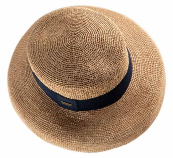 Het lichte raffia geeft een natuurlijke, soepele en heldere uitstraling, bijzonder aangenaam om te dragen, zelfs wanneer de hitte toeneemt. De contrasterende band voegt die typische Riviera-touch toe en geeft het geheel een stijlvolle structuur.