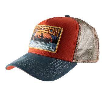 Pet met een zeer geïnspireerd ontwerp met een trendy nacht-en-dag combinatie in blauw en oranje. Het is elegant met zijn mooie geborduurde voorpaneel. Het zal een uniek accessoire zijn in de traditionele Amerikaanse geest.