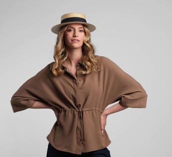 Canotier hoed in zeer fijn gevlochten, voor meer duurzaamheid en elegantie. De vernis geeft een lichte verfrissende glans.