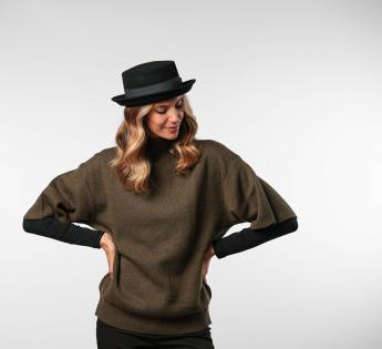 Het kan op verschillende manieren worden gedragen: met een neerwaartse rand voor een strakke stijl, of met een rand opstaand voor een gedurfder uiterlijk. Uniseks en veelzijdig, deze hoed past zowel bij een vrouwelijke als mannelijke garderobe. Ideaal voor degenen die op zoek zijn naar een uitgesproken hoofddeksel, zowel elegant als beslist modern.