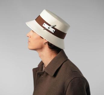 Het kan op verschillende manieren worden gedragen: met een neerwaartse rand voor een strakke stijl, of met een rand opstaand voor een gedurfder uiterlijk. Uniseks en veelzijdig, deze hoed past zowel bij een vrouwelijke als mannelijke garderobe. Ideaal voor degenen die op zoek zijn naar een uitgesproken hoofddeksel, zowel elegant als beslist modern.