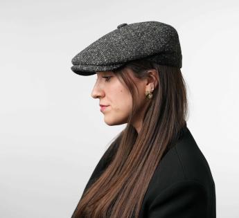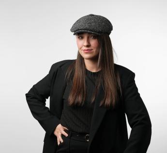 Ballon cap, met een elegante nonchalance, is de vorm genereus, zonder te loszittend te zijn. Je kunt hem zowel recht als lichtjes scheef op een kant dragen. Hij is gemaakt van een traditionele stof met een visgraatpatroon, ideaal om je tegen de kou te beschermen.