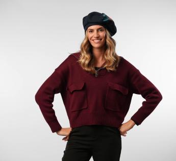 Deze baret behoudt de tijdloze elegantie van het model door de authenticiteit van de Franse mode te vieren. U kunt het op meerdere manieren dragen, aan de achterkant, aan de zijkant of zelfs als een pet, door de rand aan de voorkant als een vizier te knijpen.