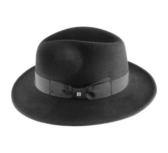Hoed 100 % Frans, voortgekomen uit een samenwerking met het merk Aurega. Ontworpen en vervaardigd in onze ateliers in Lyon, is het vilt geborsteld voor een afwerking die glans en een licht fluweelachtige uitstraling biedt.