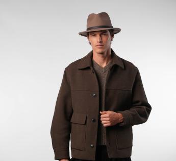 Deze Traveller hoed van wol vilt combineert comfort en nonchalance. De lage kroon, zachtjes ingedeukt, en de licht afhangende rand geven het een zachte en evenwichtige uitstraling. Niet te streng, noch te formeel, blijft de lijn gemakkelijk dagelijks te dragen.