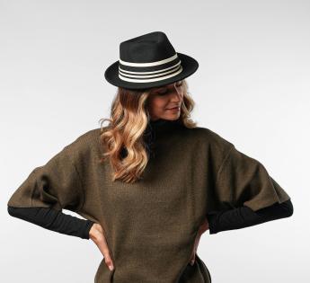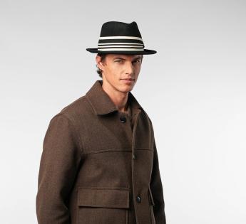 De perfecte balans tussen soberheid en durf, deze Fedora hoed met een middenlange rand verleidt met zijn discrete vorm, gemakkelijk dagelijks te dragen. Gemaakt van licht maar warm vilt, is het verfraaid met een ultra grafische hoedenband die textuur breiwerk, gladde satijn en contrasterende afwerkingen combineert.