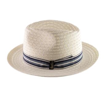 Hoed met een ademend en luchtig ontwerp, maar waterbestendig. Het is vervaardigd met een traditionele techniek van een gevlochten stro dat op een "tourniquet" is geplaatst en genaaid.