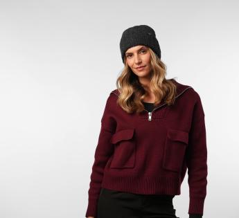 Zijn rekbare breisels bieden een soepele en aangename pasvorm op alle hoofden. De geribbelde omslag zorgt voor een goede grip en versterkt de gezellige uitstraling van het stuk. De discrete spikkels voegen een vleugje visuele reliëf toe. Een muts met een ruwe en authentieke uitstraling, gemaakt voor de winter.