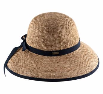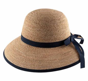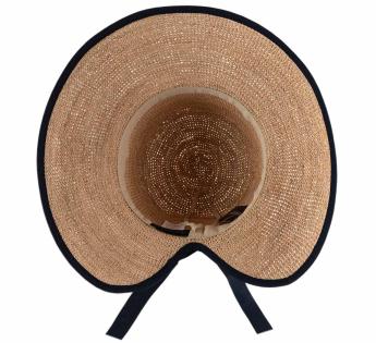 De soepele lijn, royale rand en gestrikte lint creëren een delicate, stralende en uitgesproken vrouwelijke uitstraling. Het omlijst het gezicht zachtjes, terwijl de subtiel opengewerkte achterkant de nek en het haar op natuurlijke wijze accentueert.