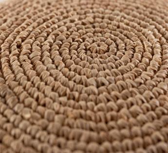 100% Raffia stro, een natuurlijke vezel gewaardeerd om zijn lichtheid en authentieke charme.