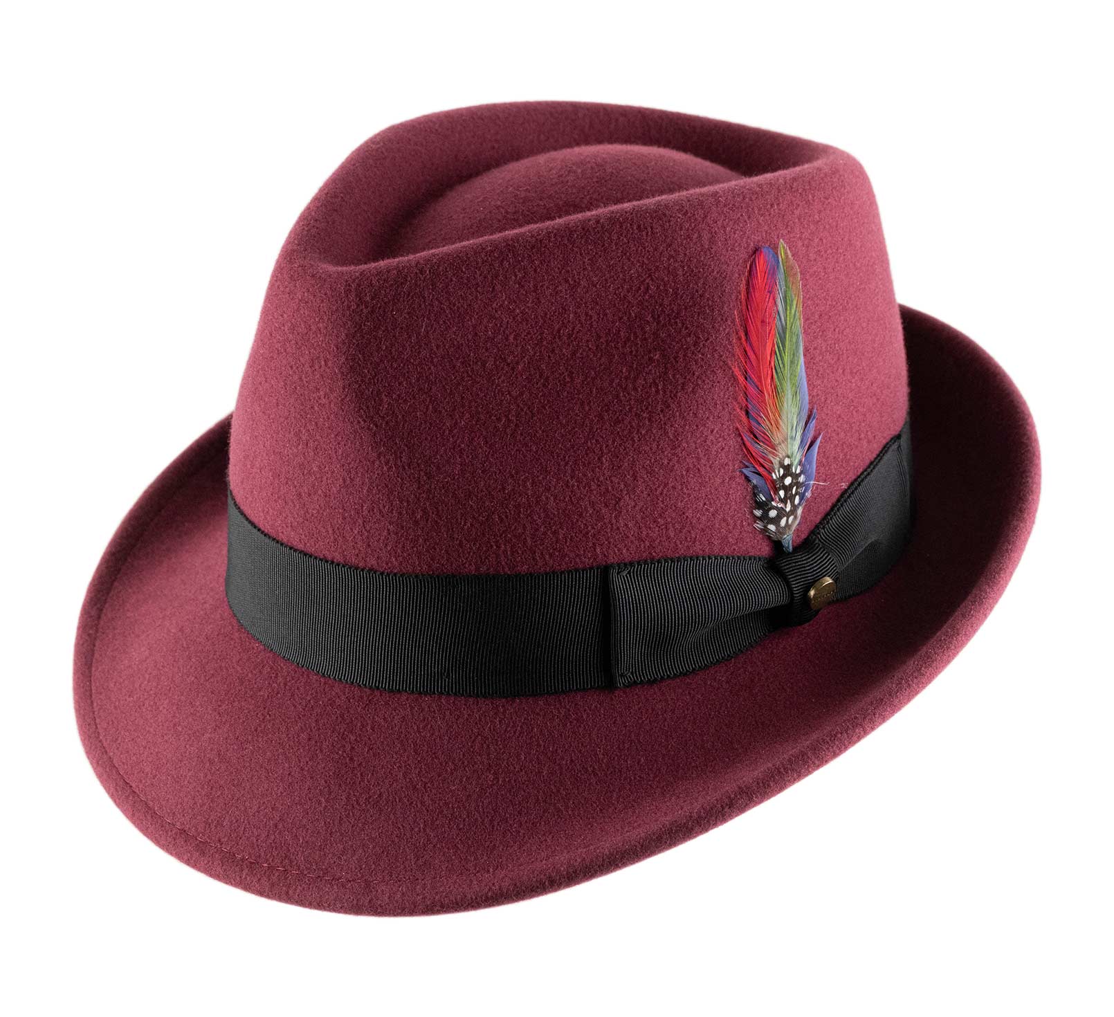 De klassieke vorm van de Trilby is charmant en tijdloos. De platte kroon, omringd door een brede rand, geeft een sportieve uitstraling. Brede plooien geven het ontwerp een zeer interessante noot.