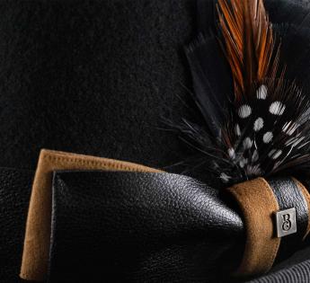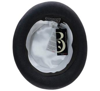 Lage hoge hoed met een gedurfde stijl, dit model breekt de codes met gedurfde elegantie. Gemaakt in onze werkplaats in Lyon, combineert het hoogwaardig Italiaans wol vilt met afwerkingen vol karakter: hoedenband van zwart imitatieleer, dubbele strik met suède-effect, metalen Label en verwijderbare veer voor een vleugje gecontroleerde fantasie.