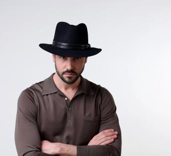 Traveller hoed voor de chique avonturier. Een versie die bescherming, klasse en soberheid combineert door zijn fijne vilt van konijnenhaar. Een model dat authenticiteit uitstraalt en de elegantie van de reizende gentleman versterkt, vooral met de toevoeging van een hoedenband van leer met stiksels. Het zal veel charme toevoegen aan onze outfits.