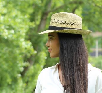 De lichte hoed is ideaal onder de zware hitte. Het natuurlijke materiaal past heel goed bij het seizoen en onze outfits voor een casual en elegante look.
