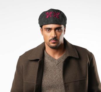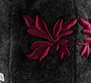 Aan de achterkant zorgt een verhoogd borduursel, vervaardigd in ons atelier, voor een sterke ontwerpershandtekening. Het 3D-patroon vangt het licht en onthult het volledige karakter van dit stuk, ontworpen als een op zichzelf staand accessoire. Deze Ivy flat cap belichaamt een kunst van detail, met een mix van grafische stijl en tijdloze geest.