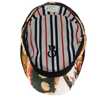Platte pet vervaardigd uit een waterbestendig materiaal. De vizier is gekleurd met een levendig zomermotief. Dit contrasteert met de kroon voor een zomerse uitstraling.