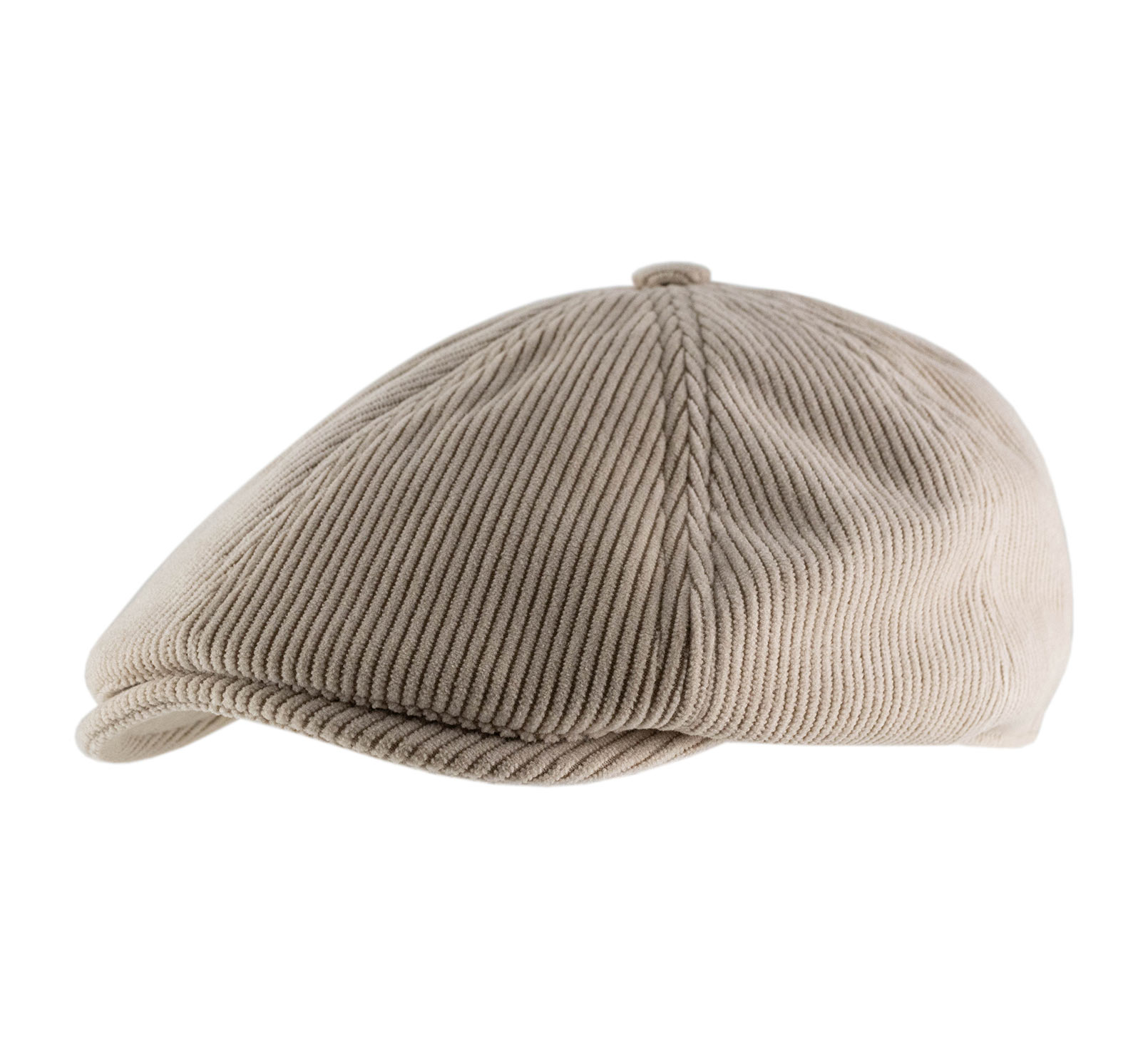 Het is vervaardigd van zacht, geribbeld flueel met een uitgesproken en soepel reliëf, dat ritme aan het materiaal geeft zonder het te verzwaren. De binnenkant is gewatteerd en gevoerd om thermisch comfort en ondersteuning in de winter te garanderen. Deze pet bevestigt zijn stijl en benadrukt de aandacht voor detail in elke afwerking.