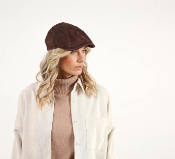 Hatteras cap van zacht en soepel leer, gesneden in acht panels. De ademende kant van het model wordt versterkt door een voering van polyester. Het is iets loszittend aan de zijkanten voordat het naar voren toe versmalt in een materiaal met een unieke textuur. Dit hoofddeksel biedt ons een ongeëvenaarde ervaring voor een seizoen in de luwte.
