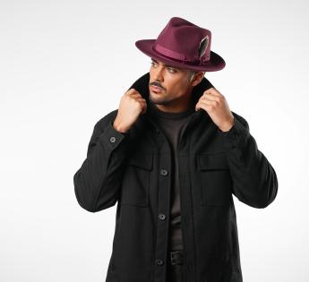 Bevestigde elegantie en hoogwaardig comfort. Deze Fedora hoed betovert onmiddellijk met zijn diepe tint en gestructureerde silhouet. Gemaakt van een mix van Australische wol en kasjmier, biedt het natuurlijke warmte, ideaal voor buiten. Zijn waterafstotende vilt, behandeld met Asahi Guard®, stoot effectief water en vuil af, terwijl het een zachte en verfijnde aanraking behoudt. Een hoofddeksel met karakter, perfect om het seizoen met stijl tegemoet te treden.