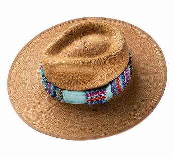 Hoed rancher geschikt voor het mooie seizoen dankzij de natuurlijke, resistente en aangename stro. Het stro is afkomstig van de bladeren van de koninklijke palmen, die de hoogste palmen zijn, "de meest majestueuze", afkomstig uit Latijns-Amerika en de Cariben. Hun bladeren kunnen meer dan 3 meter meten! De hoedenband is versierd met etnische motieven. Een afwerking die originaliteit aan het model toevoegt, naast de verfrissende bedekking. Afneembaar, je kunt ervoor kiezen om het te verwijderen of de knoop links of rechts te plaatsen (traditioneel rechts voor een dame en links voor een man). Het is ambachtelijk vervaardigd, wat betekent dat de vezel enkele onregelmatigheden kan vertonen als gevolg van het traditionele weef- en afwerkingsproces. De hoed zal vooral in authenticiteit winnen.