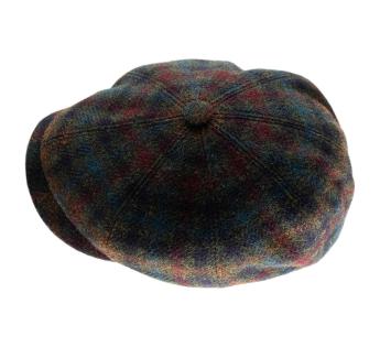 Deze 8-pans pet vindt een prachtig evenwicht tussen Britse traditie en moderne flair. De ronde en royale vorm, benadrukt door een kleine centrale knop, geeft het een iconische silhouet, hier opnieuw geïnterpreteerd in een gestructureerde wol met subtiele reflecties. De zachte stof onthult een discreet ruitmotief in een scala van diepe en natuurlijke tinten, zowel tijdloos als eigentijds.