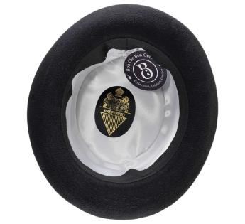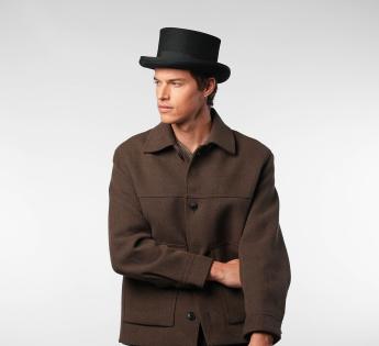 Een icoon van tijdloze elegantie, deze hoge hoed van gehard vilt belichaamt absolute verfijning. Met zijn rechte kroon, satijnen binnenafwerking en klassieke hoedenband van grosgrain, straalt hij een nobele en zelfverzekerde silhouet uit. Perfect voor grote gelegenheden, voegt hij een theatrale en verfijnde touch toe aan elke formele outfit.