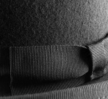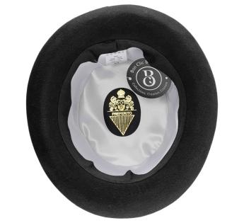 Versierd met een discrete grosgrain hoedenband, speelt het de kaart van verfijning zonder overdaad. Perfect voor ceremonies, verfijnde stadskleding of dandy-geïnspireerde silhouetten, deze hoed overstijgt de tijdperken met adel en distinctie.