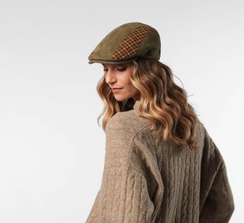 Een elegante alliantie van suede leer en scheerwol, deze ivy flat cap betovert met zijn nauwsluitende snit en gestructureerde silhouet. Het heruitgevonden Schotse ruit patroon, in natuurlijke tinten verlevendigd door fellere kleuren, creëert een opvallend spel van materialen.