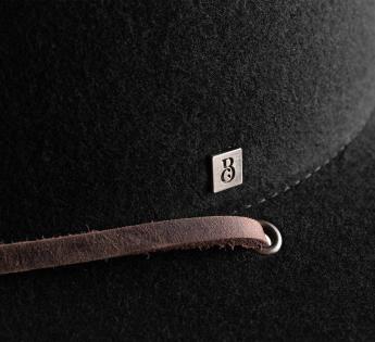 Gevormd in Italië en vervolgens vervaardigd in Frankrijk, combineert het wol vilt met vormgeheugen en een leren kinband, die door subtiel ingebedde oogjes loopt. Ideaal voor natuuruitstapjes of reizen, zijn lange rand en teardrop kroon voegen een vleugje verfijning toe aan elk avontuur.