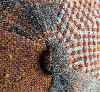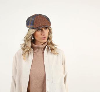 Pet met een ruime kroon van 8 panels, verlengd met een brede vizier. Een creatie in patchwork-stijl met ruiten op verschillende banden van ongebleekte wol. Het biedt een originele samenstelling van verschillende sobere, complementaire en licht retro kleuren, voor een uitstraling die bij elk van onze stijlen past.