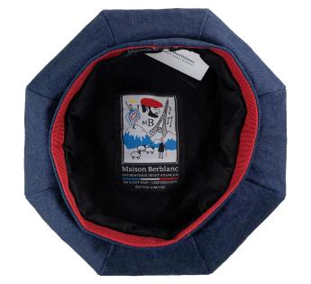 Baret vervaardigd uit 100% katoenen denim, een stof die zowel stoer als verfijnd is en robuustheid, soepelheid en een uitgesproken modern karakter combineert.