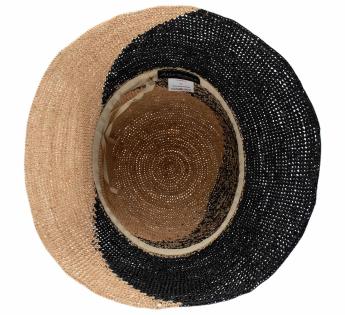 Soepel, licht en van nature ademend dankzij het open vlechtwerk, begeleidt deze hoed de mooie dagen met een echt gevoel van vrijheid. Het tweekleurige ontwerp geeft hem een bijzondere uitstraling, als een weerklank van gouden namiddagen en zwoele zomernachten.
