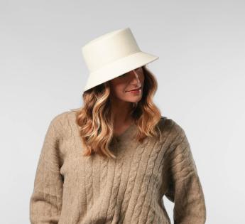 Minimalistisch, grafisch en beslist trendy: tussen een zeer retro kleine bel en een eigentijdse vissershoed van vilt, herbekijkt deze hoed de codes met een gestructureerd en verfijnd silhouet. Gemaakt van gevilte wol, is het van nature waterbestendig, ideaal om de seizoenen stijlvol te trotseren.