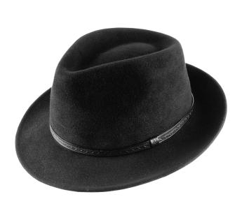 Trilby hoed 100 % Frans, gevormd in vilt dat lichtjes geborsteld is voor een prachtige fluweelachtige uitstraling. Het model is zeer licht voor een aangenaam draagcomfort. De trilby is hier ontworpen in een strakke versie, zonder trimmingen, om dus "nude" te worden gedragen en een veelheid aan composities te begeleiden.
