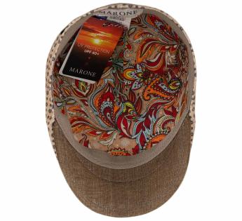 Een Ivy flat cap met een aansluitende snit, moeiteloos te dragen. Het zachte stippenpatroon contrasteert prachtig met het onbewerkte linnen vizier.