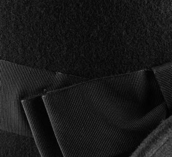 Met zijn elegante silhouet en hoge kroon, bevestigt deze Cloche hoed een uitgesproken retro stijl. De rand opstaand aan de voorkant geeft structuur aan de lijn en omlijst het gezicht zachtjes. Het ton-sur-ton hoedenband van grosgrain, afgewerkt met een platte strik, accentueert zijn verfijning zonder overdaad.