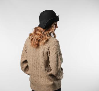 Met zijn omvattende vorm, sluit deze cloche perfect aan op het hoofd en omlijst het gezicht zachtjes. Dit dragen geeft een gracieuze en vrouwelijke uitstraling, ideaal om de nek te benadrukken en de silhouet te verlengen. Gemaakt van wol vilt, combineert het comfort, warmte en perfecte stevigheid.