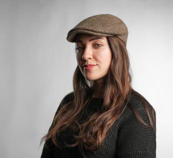 Ivy flat cap van wol, vervaardigd in Italië en versierd met een exclusief borduurwerk ontworpen in ons atelier in Lyon. Dit arabeskenpatroon, met zijn romantische en Victoriaanse uitstraling, voegt een originele en subtiel verfijnde touch toe.