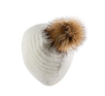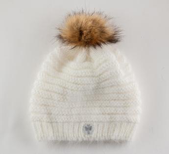 Zachtheid en winterse elegantie voor deze muts, gebreid in Frankrijk van een lichte en zachte angoramix. Het pluizige breisel biedt een zijdezachte aanraking en een comfortabele warmte, perfect voor koude dagen. De pompon van synthetisch bont voegt een vrouwelijke en verfijnde touch toe.
