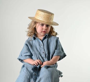 De Canotier hoed voor kinderen is het essentiële zomeraccessoire. Gemakkelijk te combineren, kan het al hun outfits met gemak afmaken. Het is "nude" gelaten, zonder trimmen, voor meer veelzijdigheid.