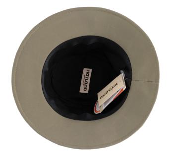 Deze vissershoed gaat veel verder dan het essentiële. Achter zijn sobere lijn schuilt echte textieltechnologie met een Sympatex®-membraan, ontworpen als een doeltreffende barrière tegen regen en wind, terwijl het de vochtigheid van het lichaam laat ontsnappen.