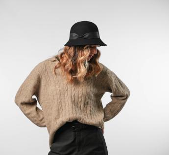 Chic en vrouwelijk, deze Cloche hoed van gevilte wol betovert met zijn retro lijn en omhullende silhouet. Het wordt geaccentueerd door soepel leren trimmen, elegant geknepen om karakter aan het geheel toe te voegen.