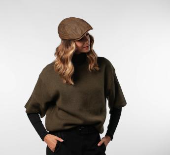 Platte pet van geolied katoen. Het geeft de illusie van een oude, gepatineerde leer. Het is gemaakt van een technische stof die de ademendheid van katoen combineert met de robuustheid van synthetische vezels. De warme kleur en de zachte textuur geven het een tijdloos karakter, perfect voor wie op zoek is naar een authentieke en verfijnde stijl. Het discrete metalen label aan de zijkant benadrukt de kwaliteit en aandacht voor detail.