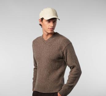Baseball cap met 6 pans in dikke ribfluweel, met een brede nerf en soepele textuur. Een materiaal met een uitgesproken retro-geest, ideaal voor het tussenseizoen of de winter dankzij de zachte aanraking en natuurlijke warmte.